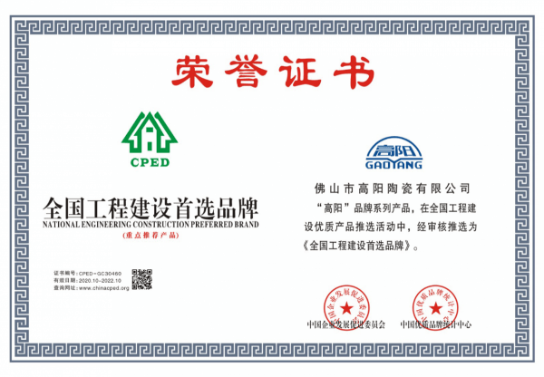 秉承“質(zhì)量為先”的理念,高陽(yáng)陶瓷始終將產(chǎn)品質(zhì)量作為核心,嚴(yán)格執(zhí)行ISO9001:2000國(guó)際質(zhì)量管理體系認(rèn)證標(biāo)準(zhǔn),確保產(chǎn)品在性能和耐用性方面達(dá)到行業(yè)標(biāo)準(zhǔn)。高陽(yáng)陶瓷緊跟建筑裝飾潮流,致力于通過(guò)快速、創(chuàng)新的產(chǎn)品開(kāi)發(fā)速度滿足市場(chǎng)需求。目前推出的負(fù)離子生態(tài)石、負(fù)離子柔光中板、羅馬臻石大板、鉑金金剛石、帝皇玉、通體仿古磚、通體大理石等系列產(chǎn)品,以其優(yōu)良的品質(zhì)和豐富的花色獲得了設(shè)計(jì)師和終端消費(fèi)者的青睞。