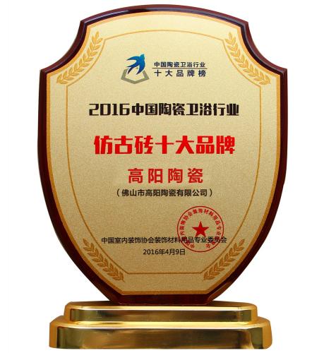 2016年被評為中國陶瓷衛(wèi)浴行業(yè)“仿古磚十大品牌”